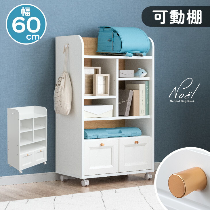 13日+5% ランドセルラック ランドセル収納 スリム 幅60 キャスター おしゃれ キッズ 子供 棚 木製 ラック 本棚 シンプル コンパクト 子供部屋 バッグ 引き出し