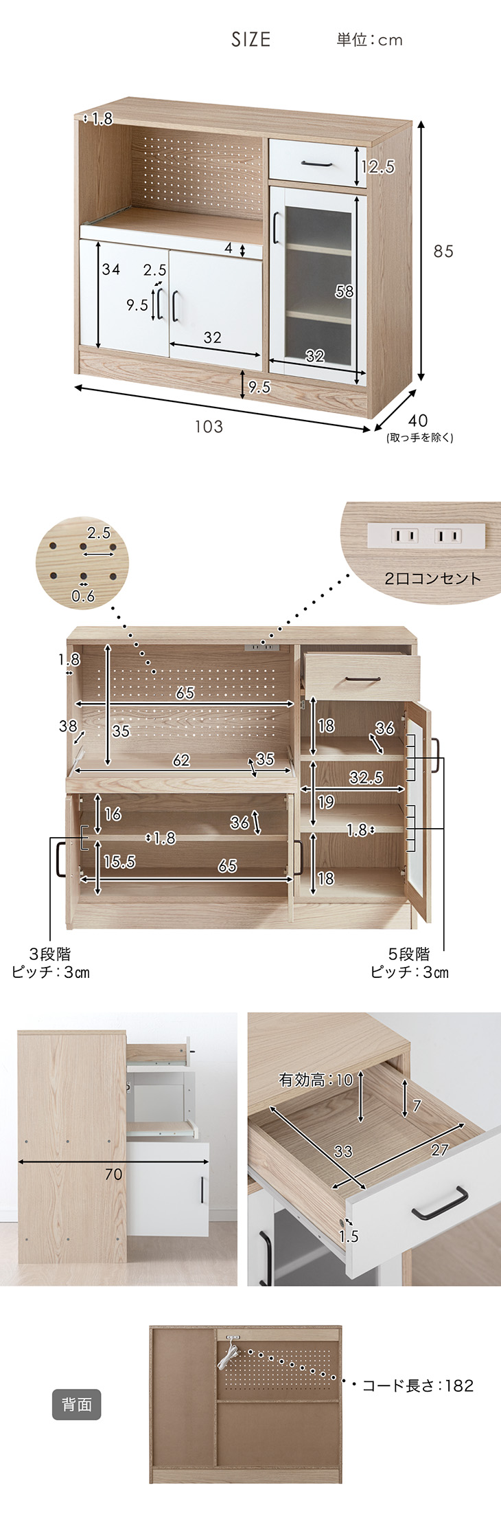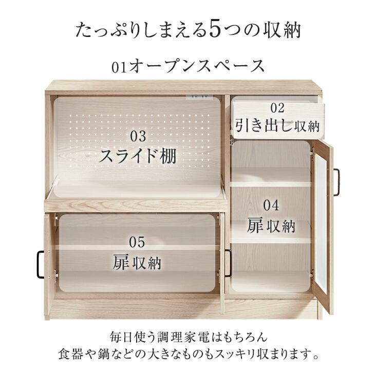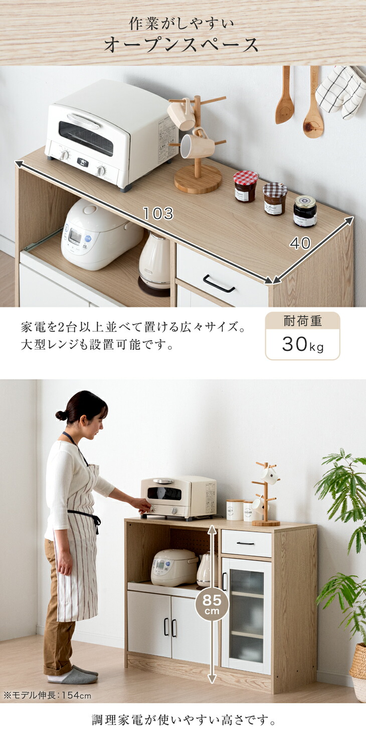 食器棚 おしゃれ 収納 カップボード 北欧 キッチンボード 国産 幅103 レンジ台 レンジラック 食器収納 キッチン収納 木目 レンジボード スライド棚