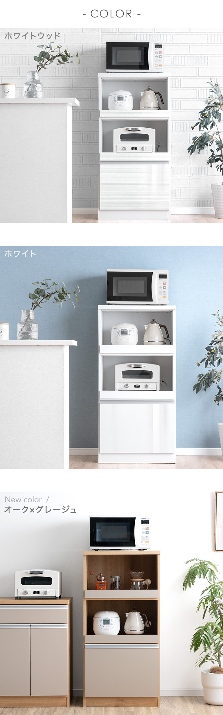 ホワイトウッド、ホワイト 、オーク×グレージュ