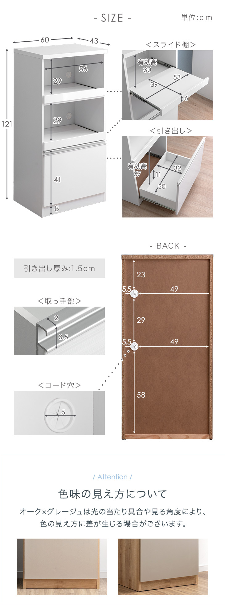 外寸:幅60x奥行43x高さ121cm