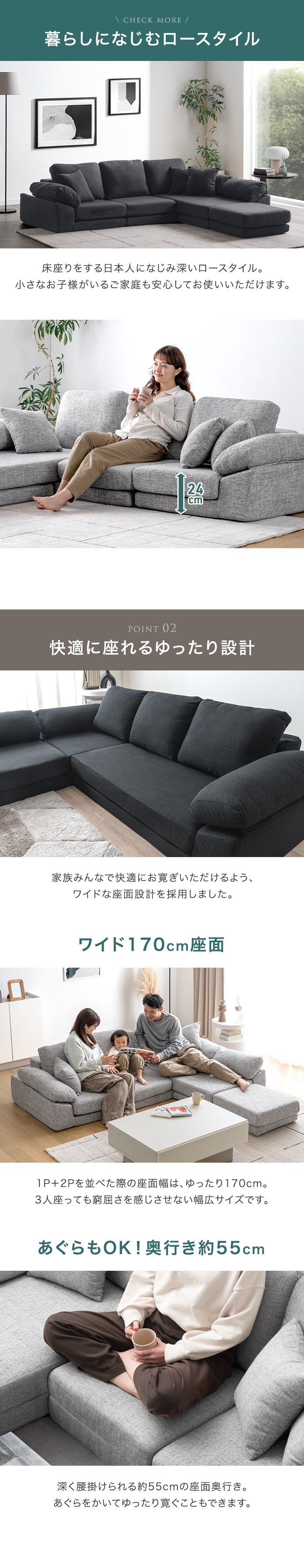 タンスのゲン コンパクト ファブリック ロータイプ コーナーソファ フロアソファ