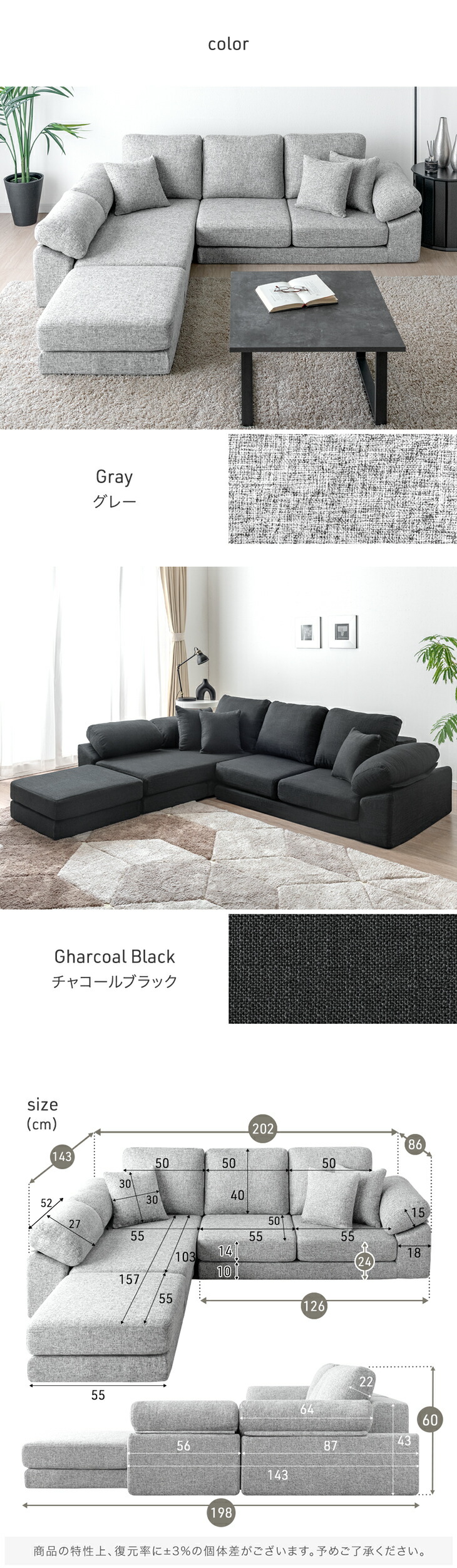 幅:202×奥行198×高さ60cm(カウチスタイル時)
