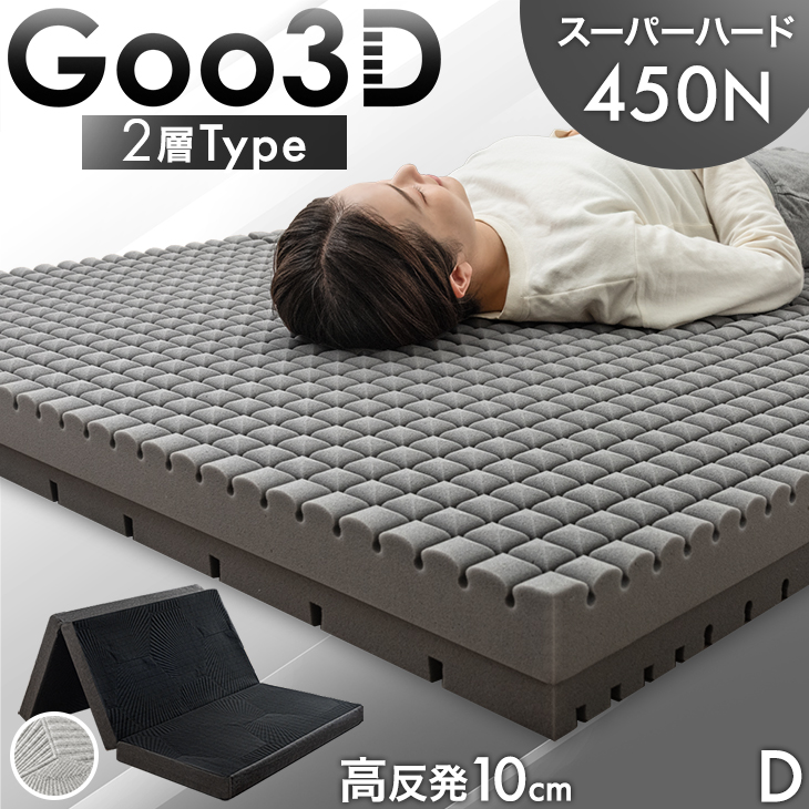 マットレス ダブル 三つ折り Goo3D 2層 折りたたみ 高反発マットレス ベッドマットレス 極厚10cm 高反発 硬め ベッドマット 敷布団