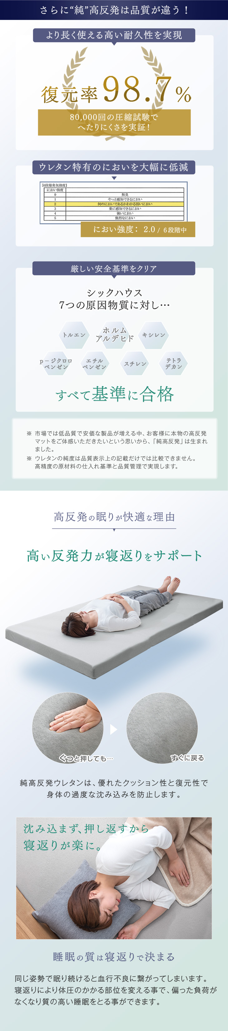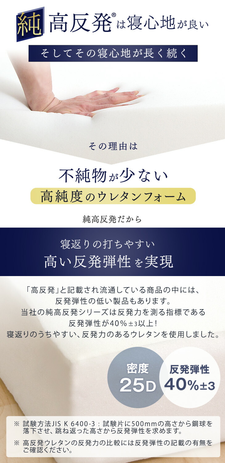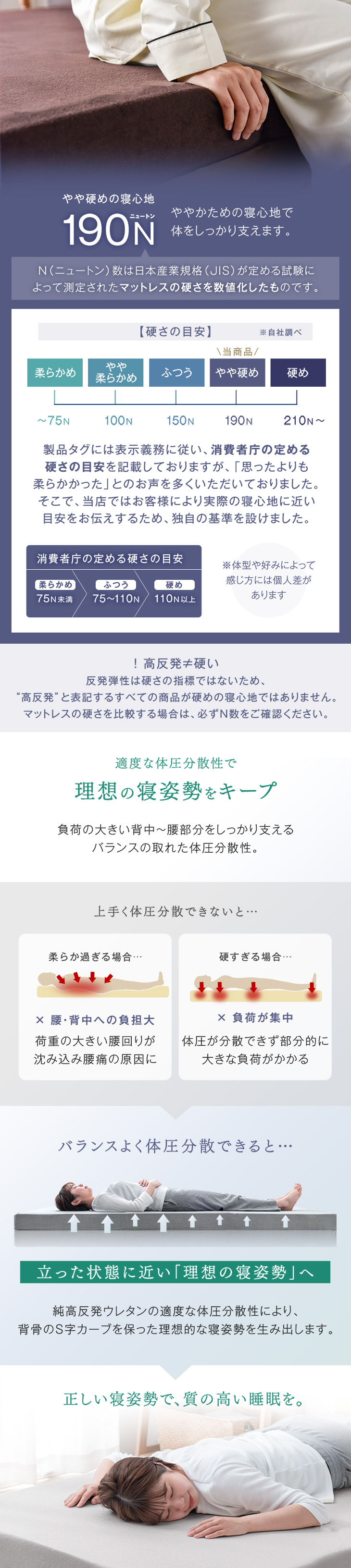 中材:高反発ウレタンフォーム(密度25D<25kg/m3>、190N)