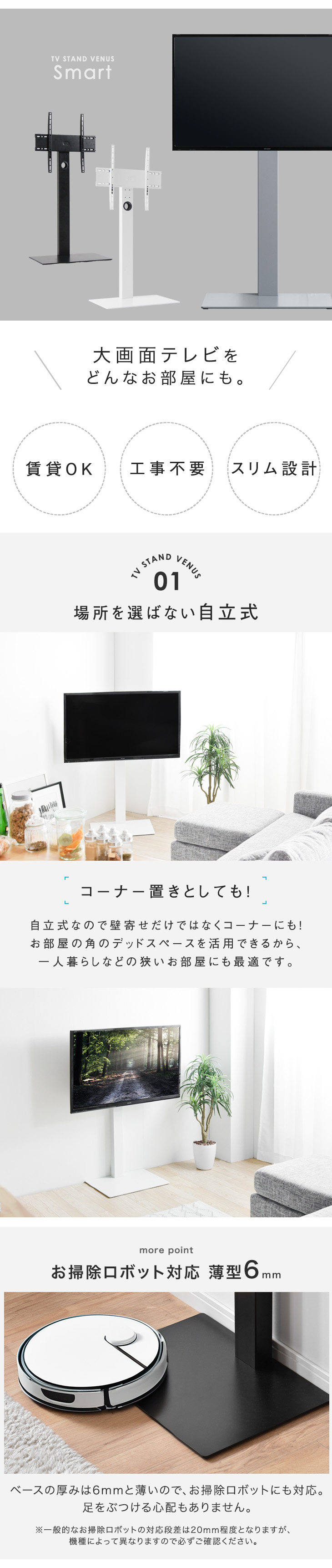 テレビ台 テレビスタンド ロータイプ 壁寄せ 首振り 自立式 壁掛け風 32〜65インチ対応 ハイタイプ TV台 壁寄せテレビ台 一人暮らし おしゃれ 自立