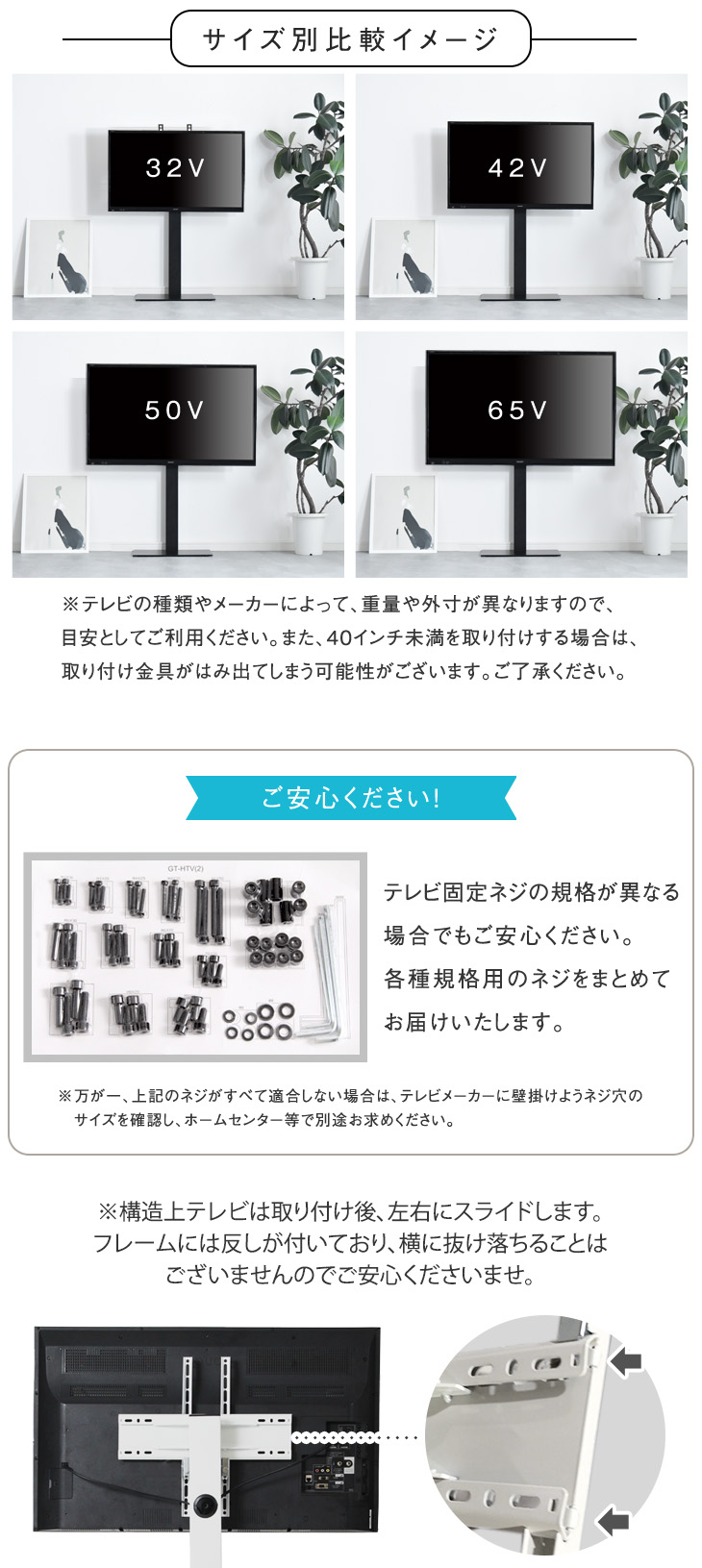 対応のテレビに関しましては商品詳細にございます、テレビ取り付け適合表をご確認ください。
