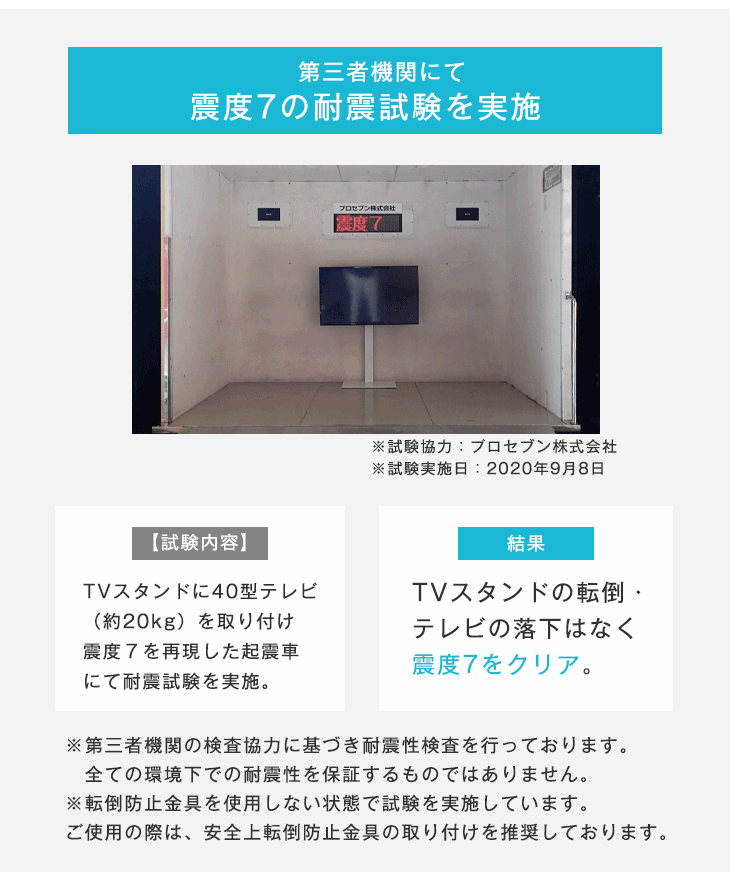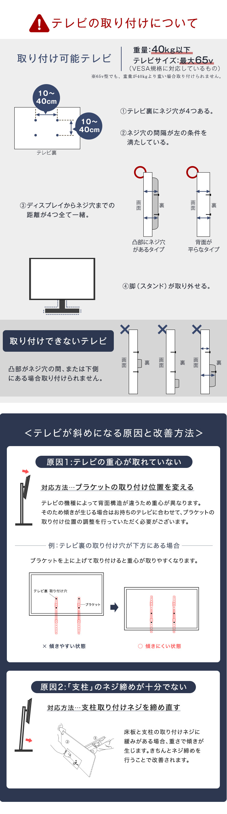 テレビ取付部:約40kg以下(65v型テレビ以下 VESA規格対応)
