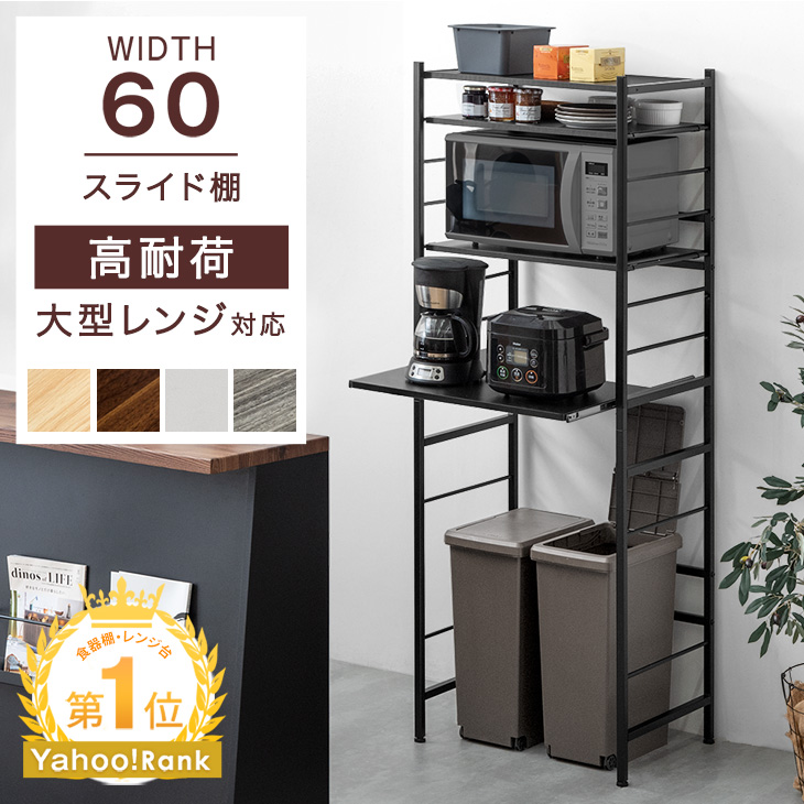 11日+5% レンジ台 幅60 レンジラック スリム 大型レンジ対応 高耐荷設計 スライド棚 スチール レンジラック 収納ラック ゴミ箱上ラック キッチンラック ゴミ箱