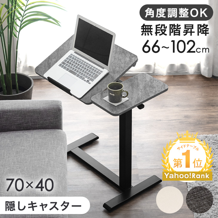 サイドテーブル 昇降 スリム ベッドサイドテーブル 昇降式 キャスター 幅70 昇降テーブル 無段階 ベッドテーブル ソファテーブル コンパクト
