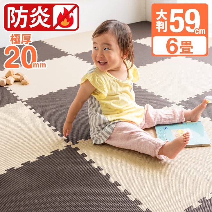 ジョイントマット 59cm 厚み2cm 6畳 32枚 大判 防炎 赤ちゃん ベビー プレイマット 安全 キッズマット キッズ マット クッションマット 幼稚園 保育園
