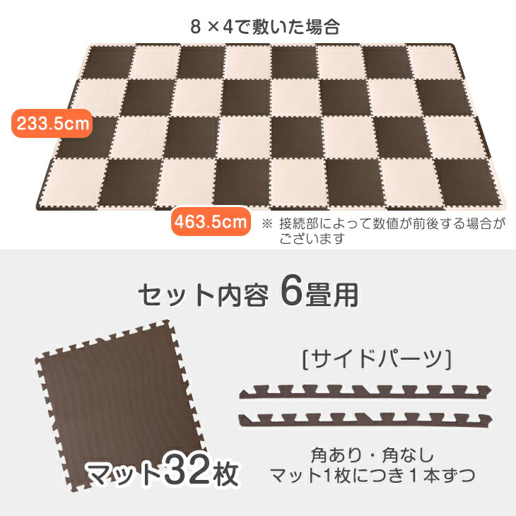 ※PE素材の特性上、使用するうちに負荷がかかる部分に多少のへたりが生じます。そのため、既に使用しているマットに新しいマットを繋げて使用する際、上手く繋がらない場合がございます。