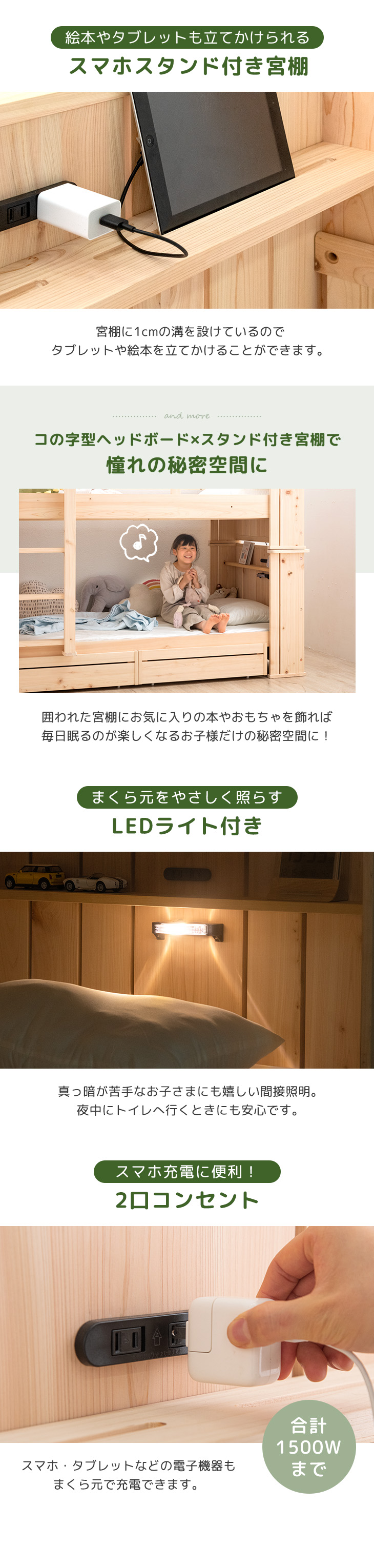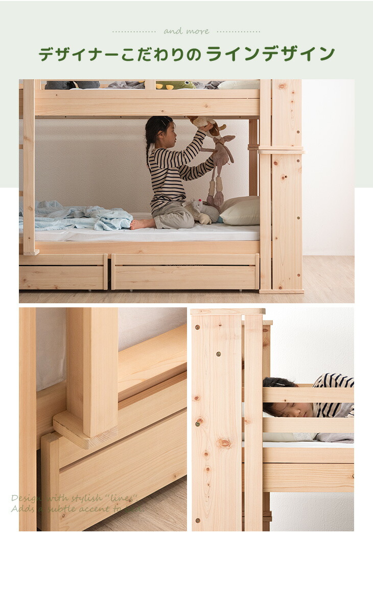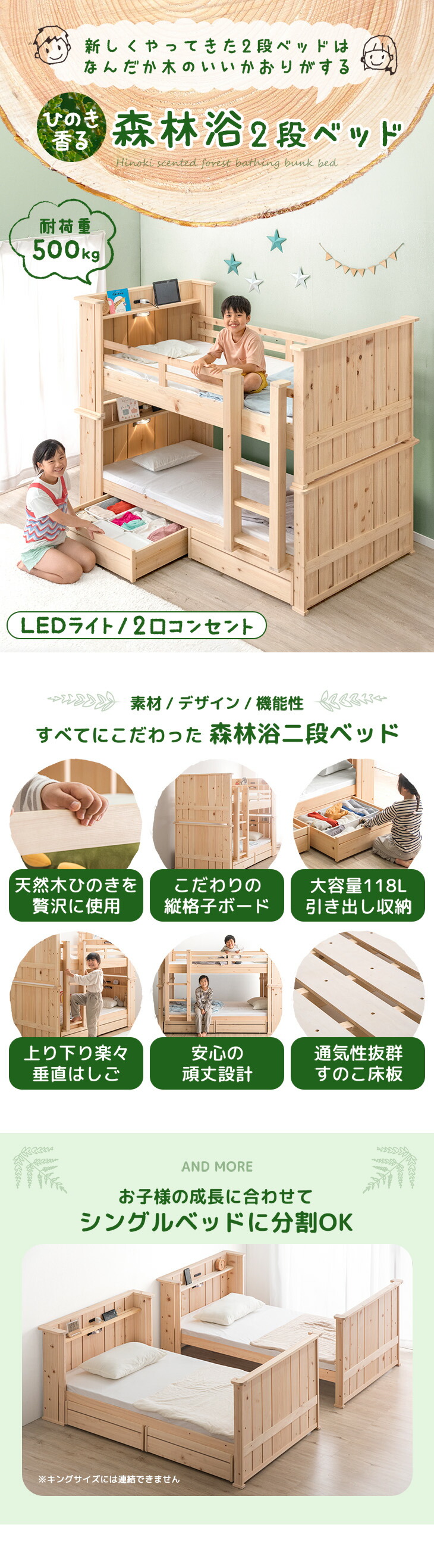 二段ベッド 子供 分離 宮付き おしゃれ ひのき 大人用 収納付き シングル対応 引き出し付き はしご おしゃれ 檜 2段ベット 木製