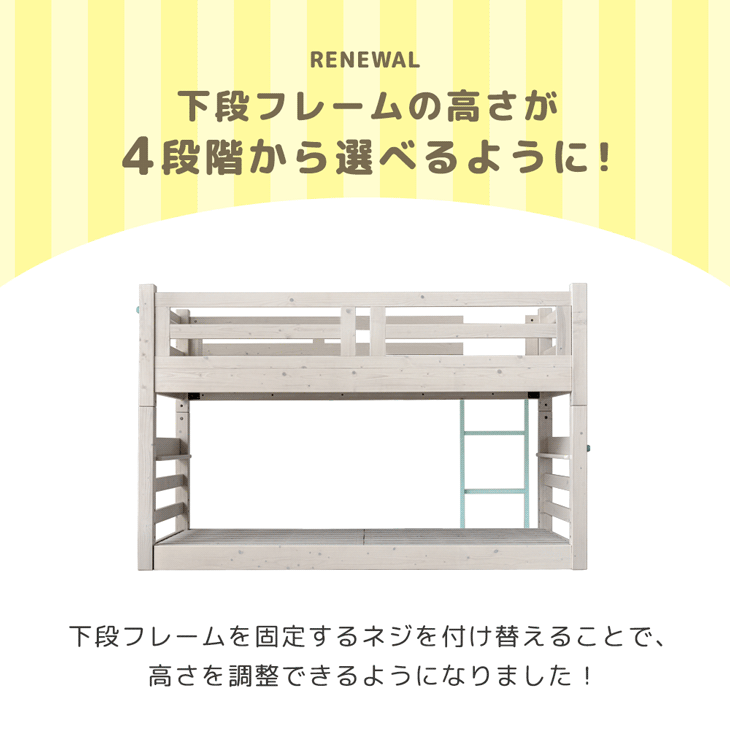 ※2段ベッドとして使用時は、下段のみ高さ調整できます。上段は高さ調整できません。