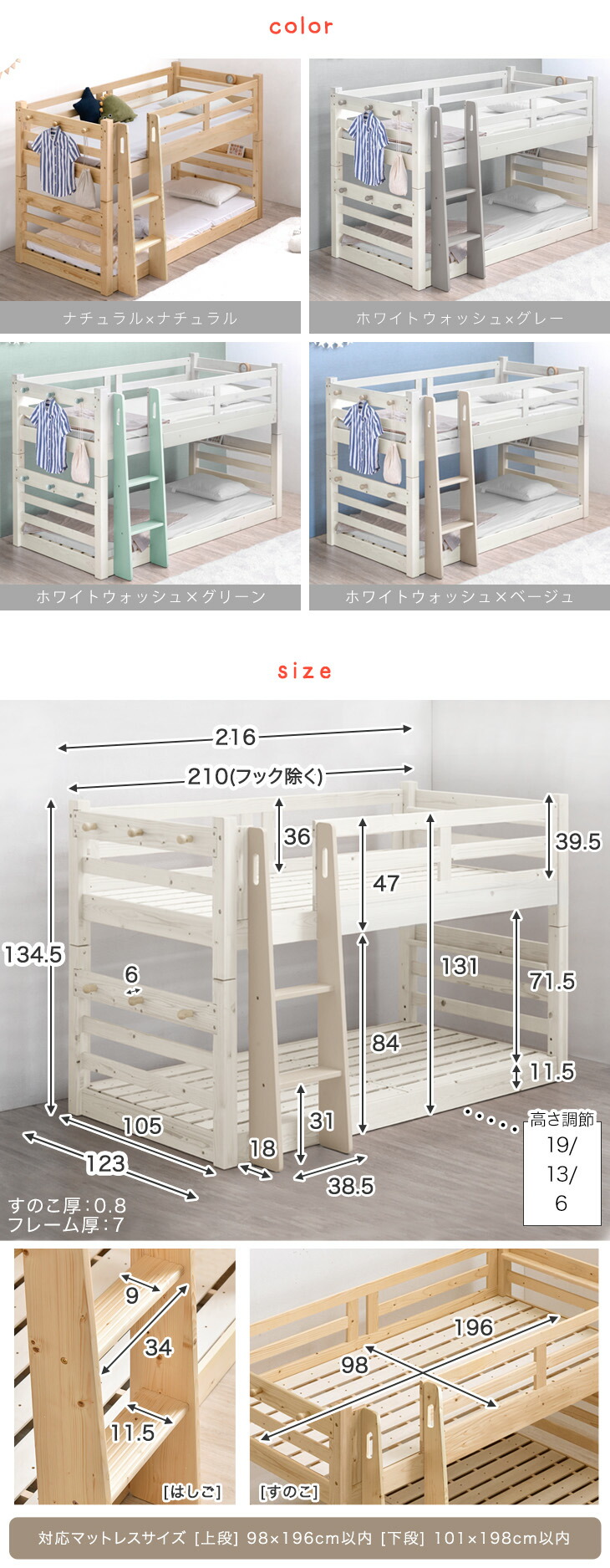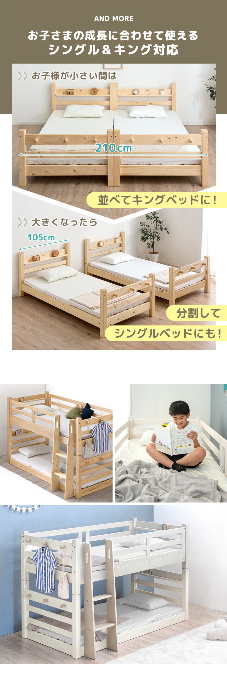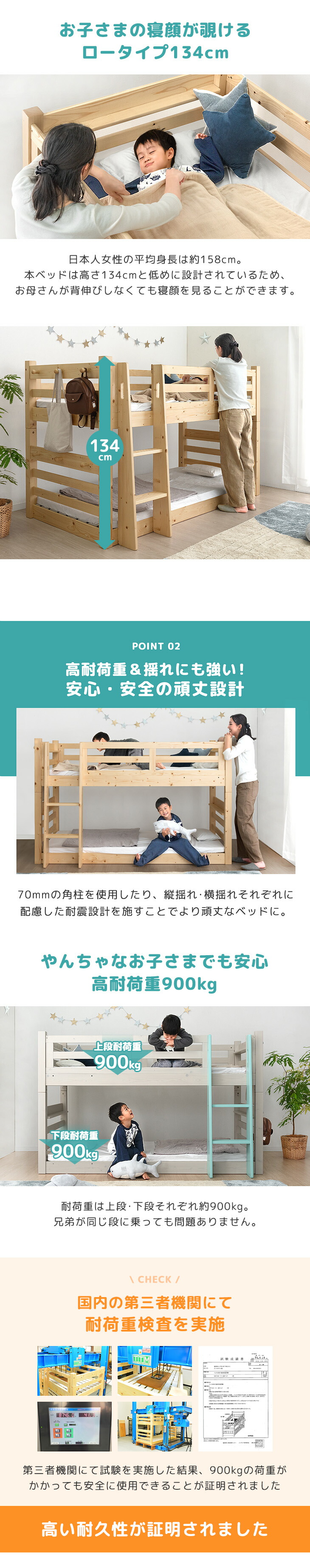 4日+5% 二段ベッド 子供 2段ベッド 分割 分離 耐荷重900kg ロータイプ 134cm 二段ベット おしゃれ 木製 北欧 宮付き シンプル 新入学 二段ベット 超大型