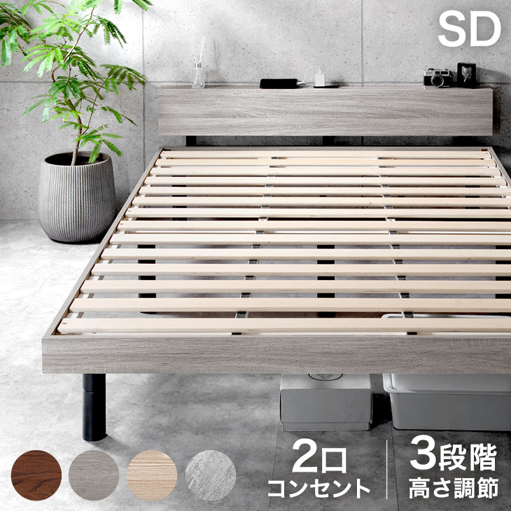 ベッド セミダブル ベッドフレーム すのこ 高さ調節 宮付き おしゃれ セミダブルベッド 木製 2口コンセント付き すのこベッド 宮付きベッド