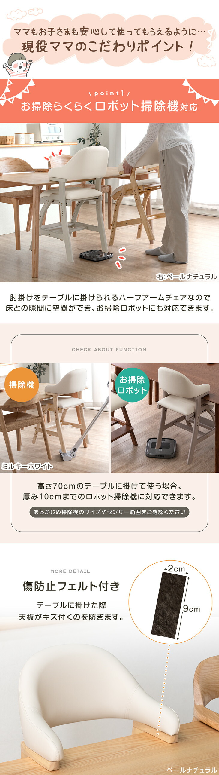 ※使用されるテーブル/デスクの天板厚が9cm以上の場合チェアを掛けることができません。また幕板などが干渉して掛けられない場合もございますので、事前にテーブルの形状のご確認をお願いいたします。