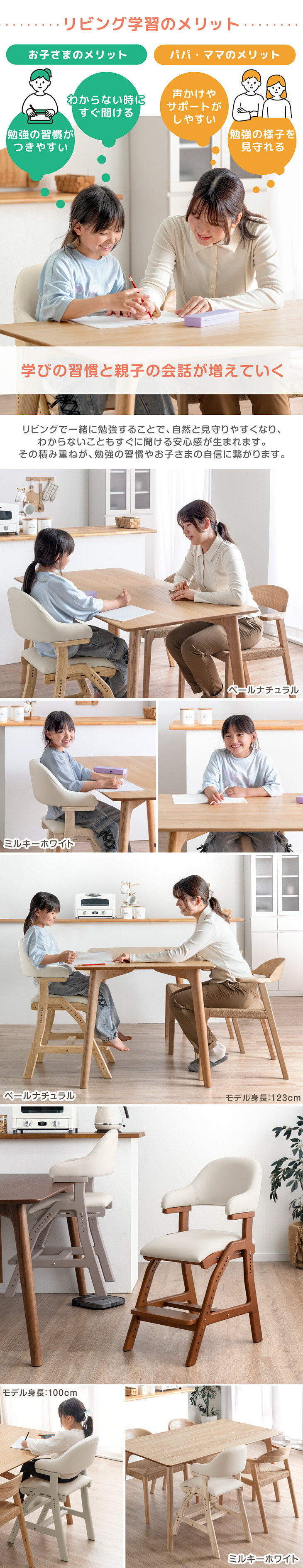 学習チェア 木製 高さ調節 学習 リビング学習 キッズチェア 子供用イス ダイニングチェア デスクチェア ハンギング 子供用椅子