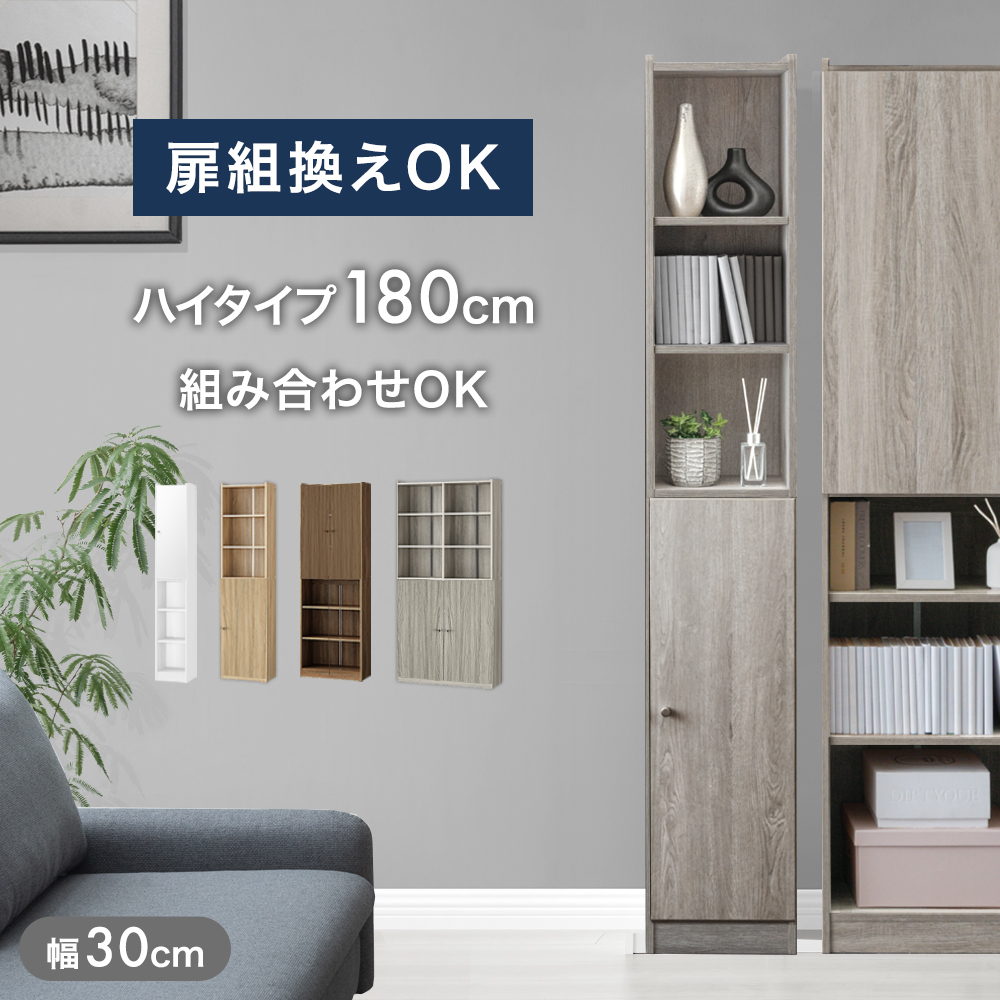 本棚 スリム 大容量 扉付き a4 薄型 幅30 おしゃれ 収納ラック 隠せる 可動棚 オープンラック シェルフ 高さ180 北欧