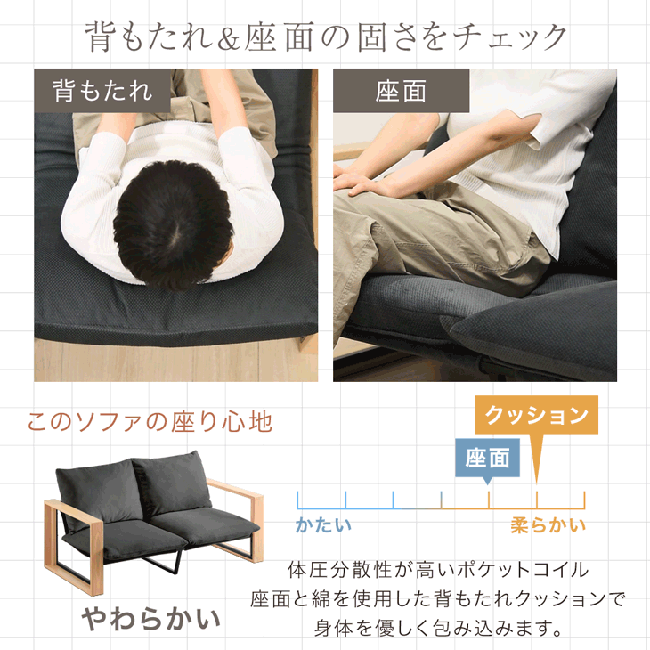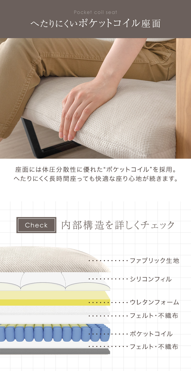 座面:綿、ウレタン、ポケットコイル