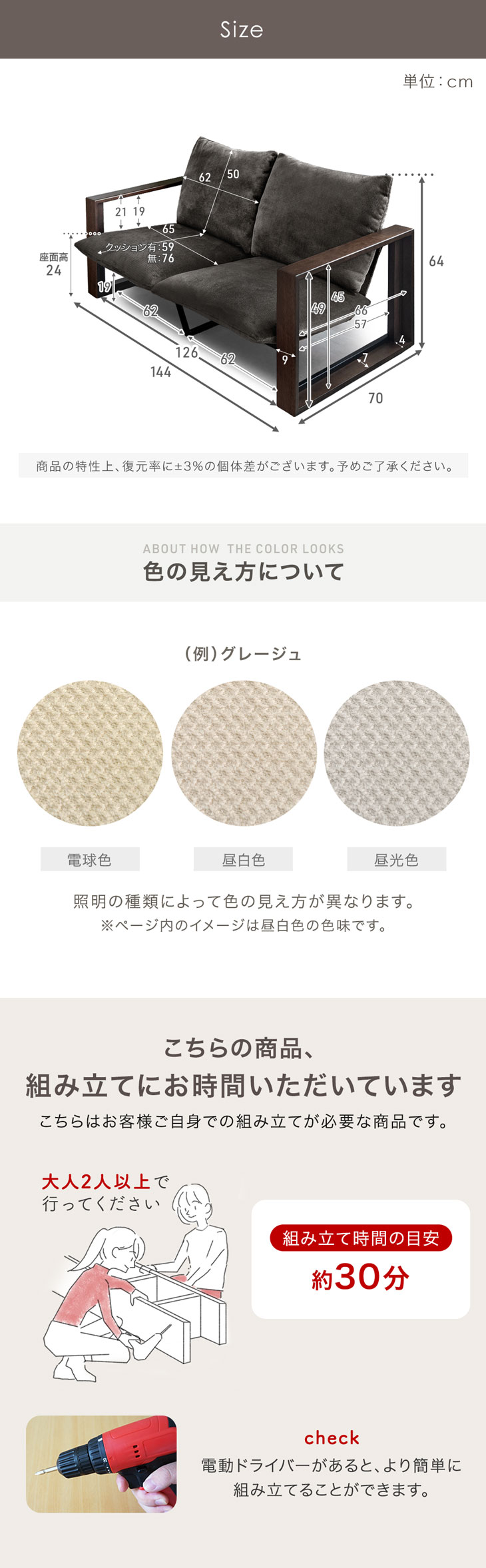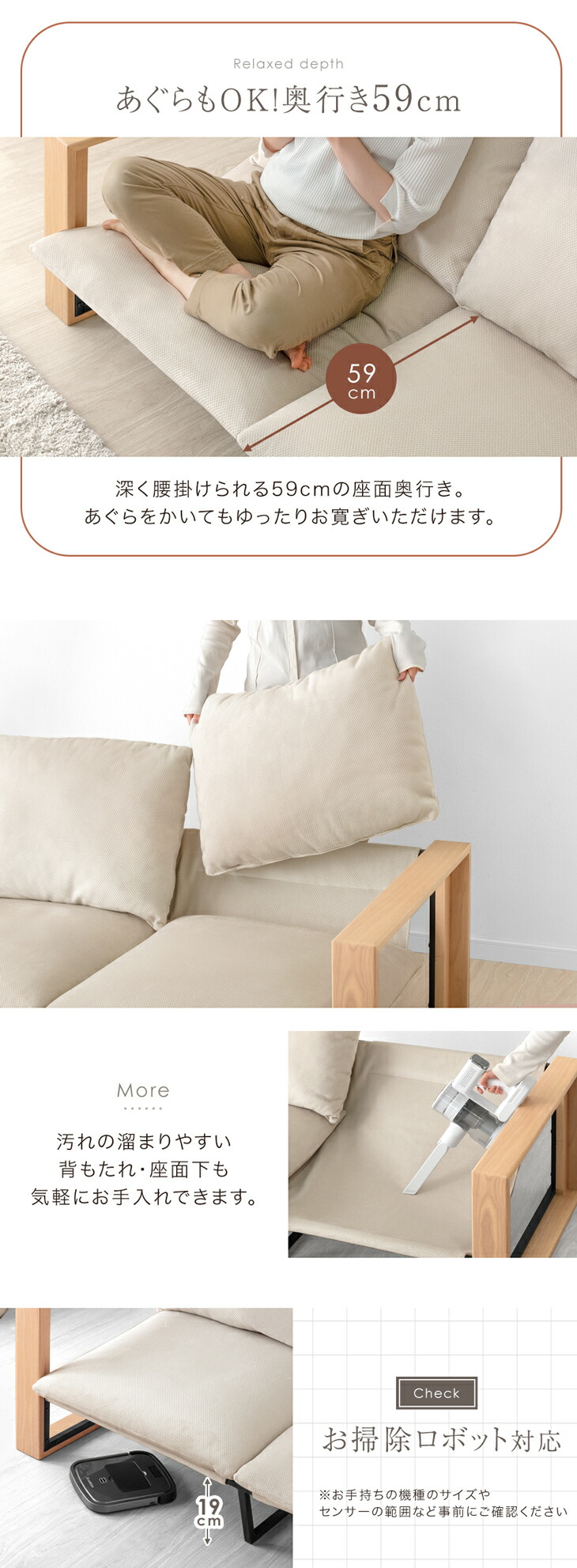 ※座面・クッションのファスナーは製造時に必要なものであり、取り外し・洗濯はできません。
