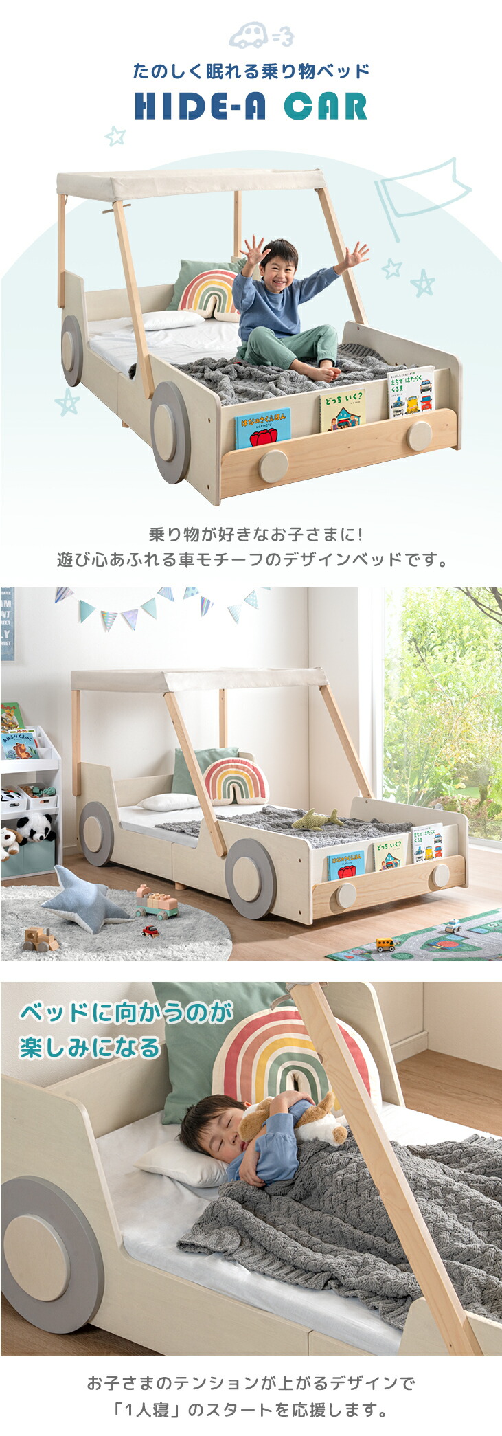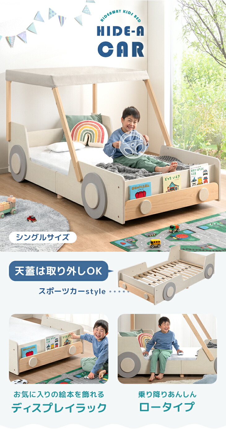 18日+5% ベッド 子供 シングル システムベッド ロータイプ キッズベッド 車型 子供ベッド ローベッド 秘密基地 子供部屋 車 男の子 99900164 超大型