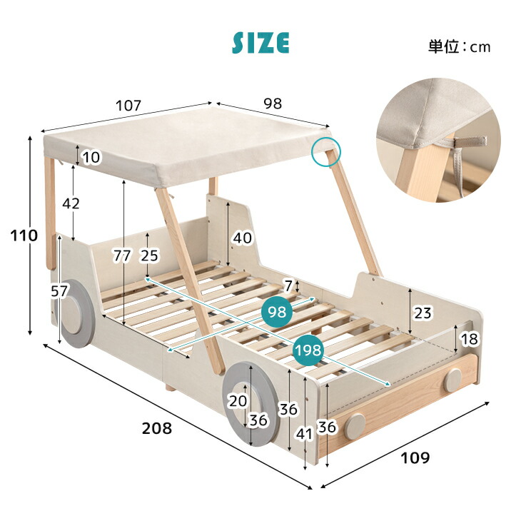 ベッド内寸:幅98×奥行198cm
