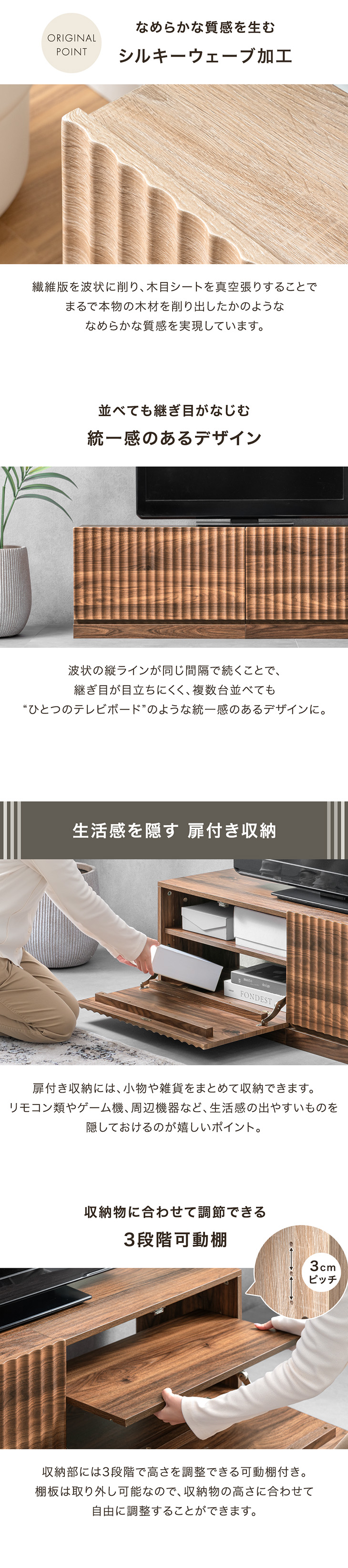 シャビーオーク、ホワイトウッド、ウォールナット