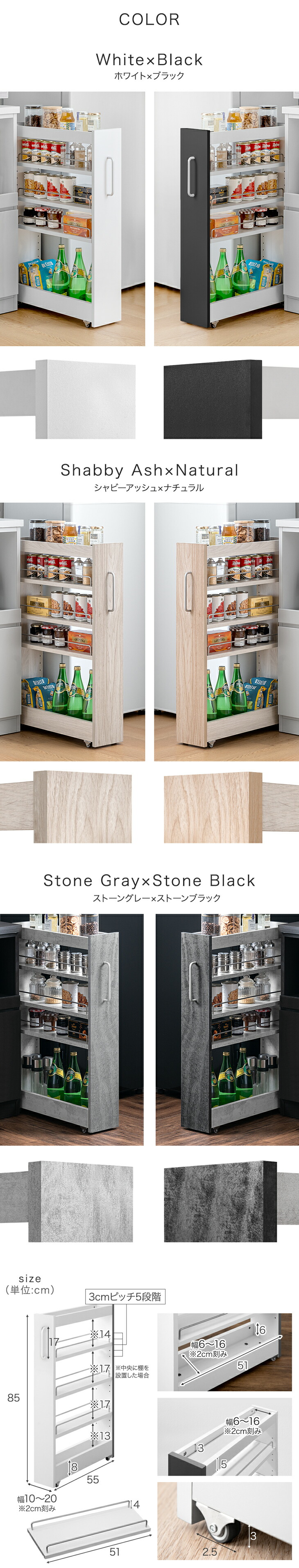 10cm 12cm 14cm 16cm 18cm 20cm キャスター付き 台所 引き出し