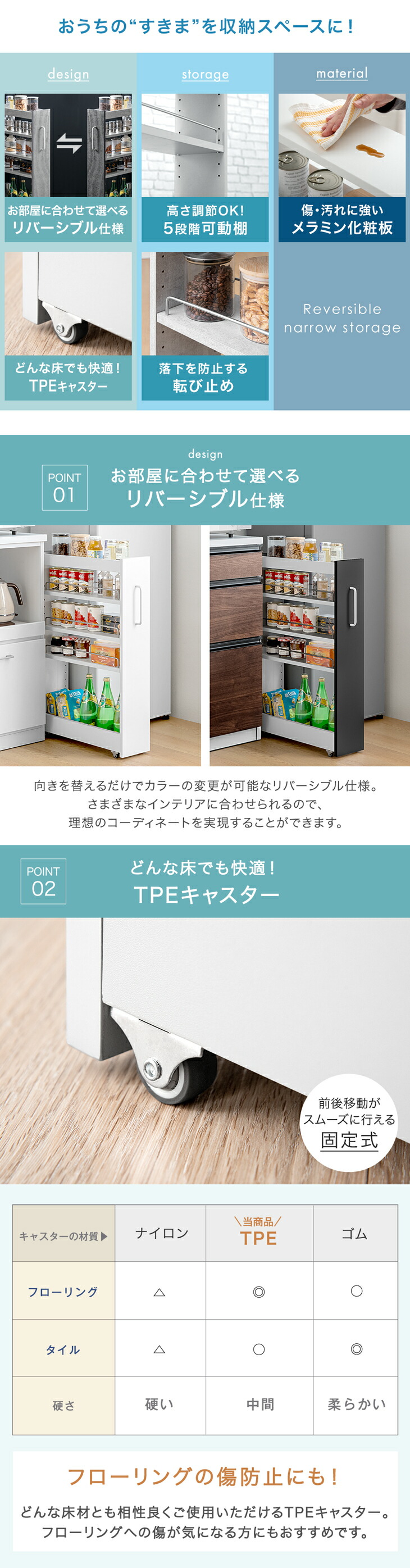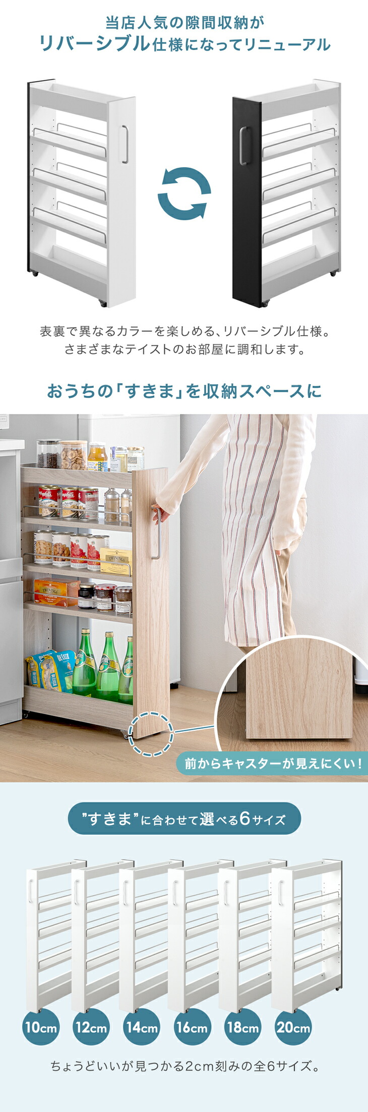 隙間収納 キッチン スリム ロータイプ リバーシブル 49600459 49600460 49600461 49600462 49600463 冷蔵庫 すきま収納 キッチン収納 洗面所