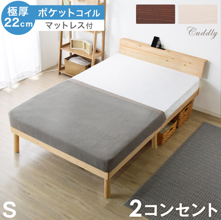 ベッド マットレス付き すのこベッド シングル マットレス 宮付き ベッドフレーム ポケットコイル ベッド すのこベッド 宮棚 天然木