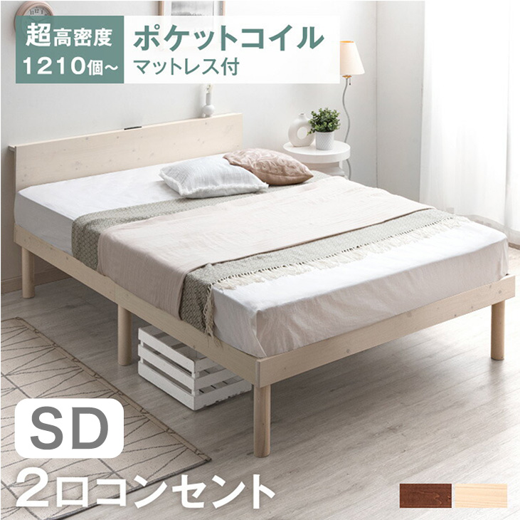 ベッド セミダブルベッド ポケットコイル マットレス 宮付き
