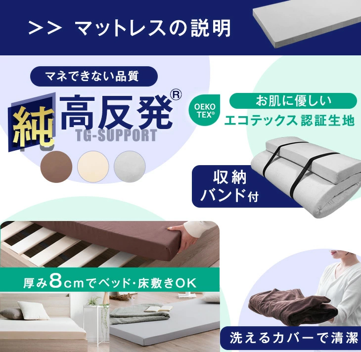 中材:高反発ウレタンフォーム(密度22D <22kg/m3>、170N)