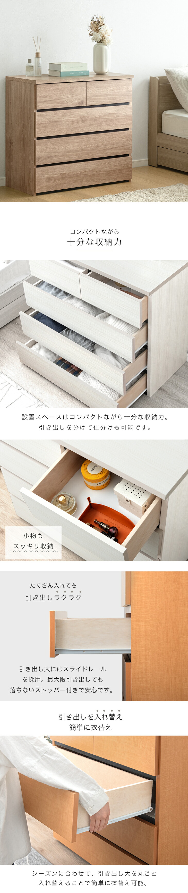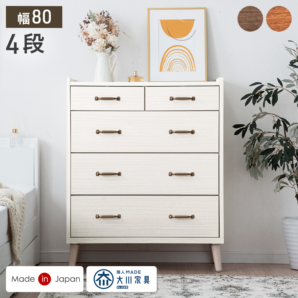 チェスト 白 北欧 国産 完成品 幅80 4段 タンス 収納 おしゃれ リビング収納 衣類収納 収納家具 収納チェスト