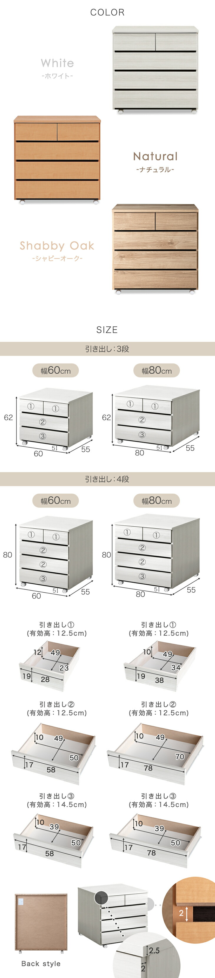 引き出し:(大)約10kg、(小)約5kg
