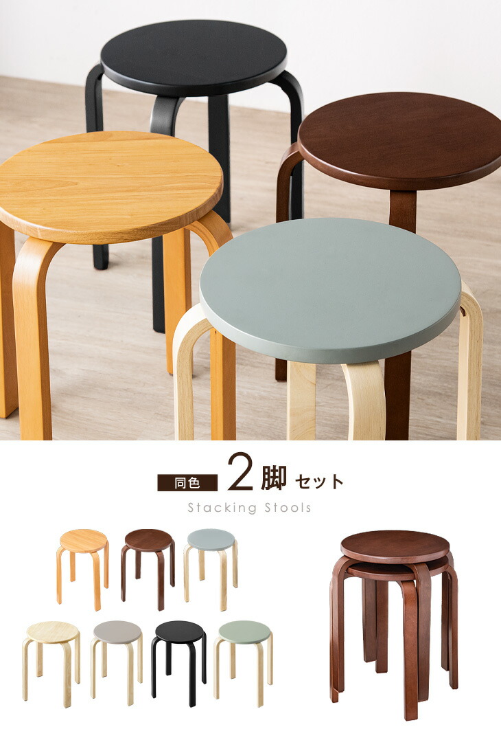 スツール おしゃれ スタッキングチェア 椅子 2脚セット コンパクト ナチュラル 北欧 シンプル ウッドチェア 木製