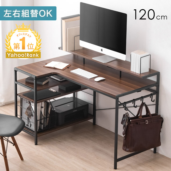 デスク 収納 120 棚 オフィスデスク おしゃれ 北欧 シンプル 棚付き 収納付き ゲーミングデスク l字 パソコンデスク 大人 ラック付き デスク スリム l字型