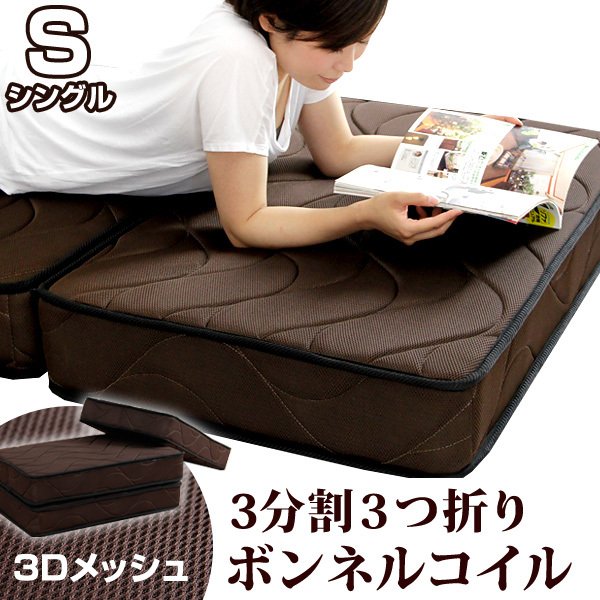 マットレス シングル ボンネルコイルマットレス 三分割 三つ折りボンネルコイルマットレス 折りたたみ 折り畳み 高密度コイル270個