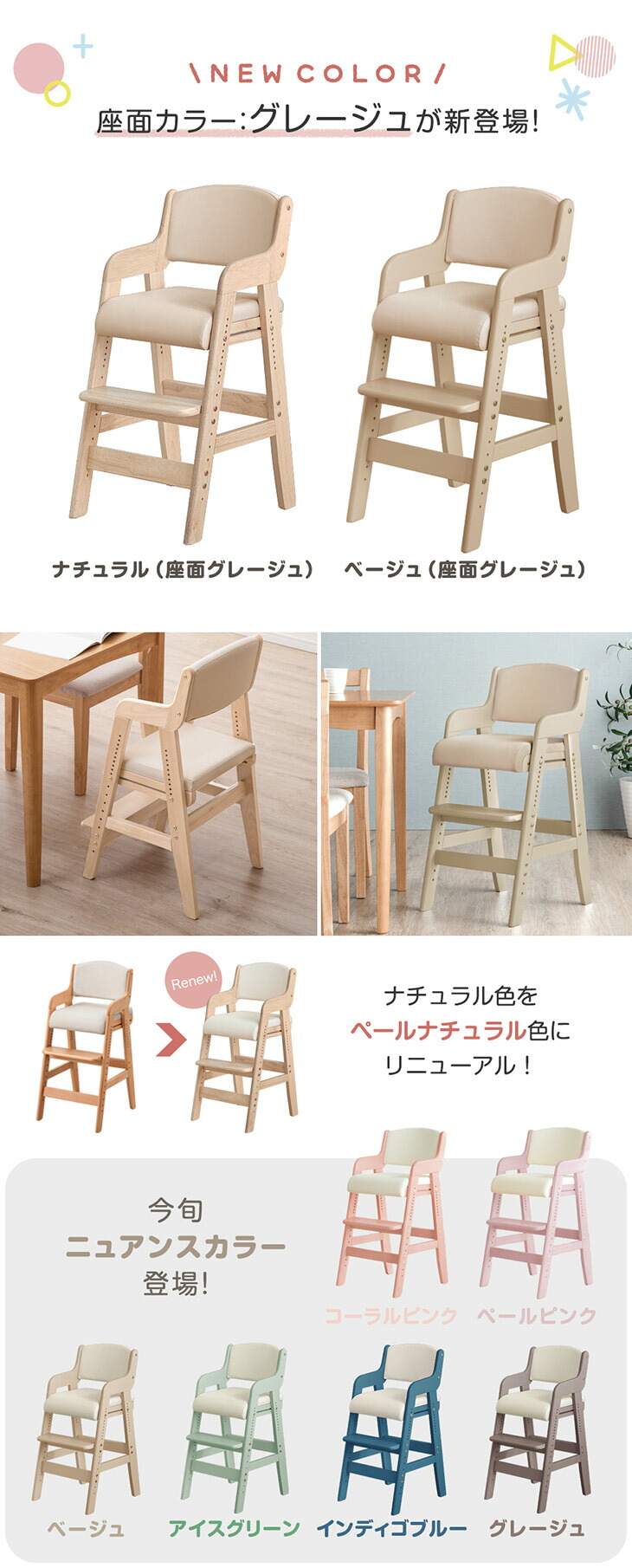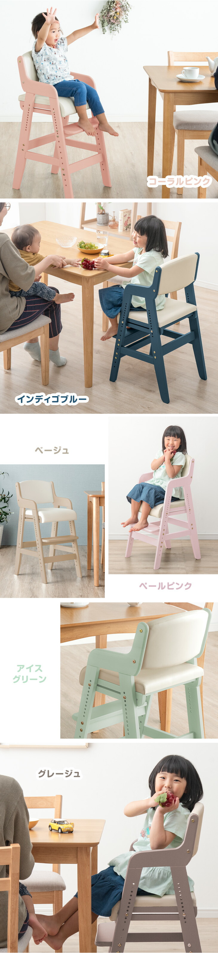 ベビーチェア ハイチェア 木製 高さ調整 キッズチェア 子供用イス ダイニング ベビーチェアー 子供用椅子 天然木 チャイルドチェア