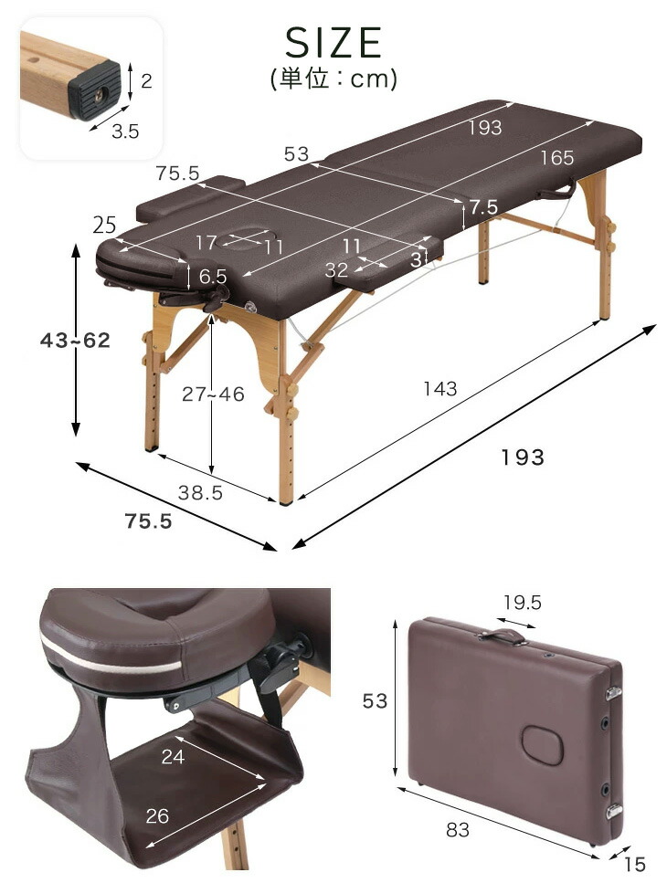 外寸:幅75.5×奥行193×高さ43〜62cm