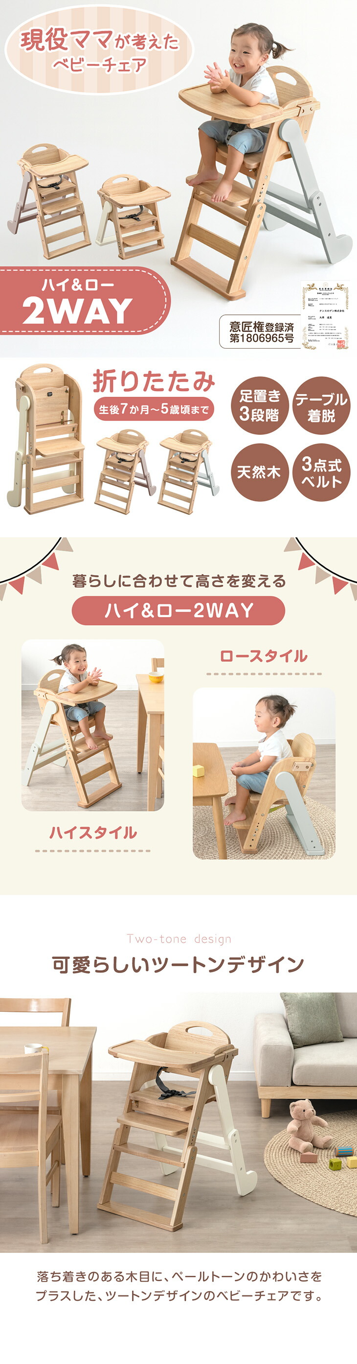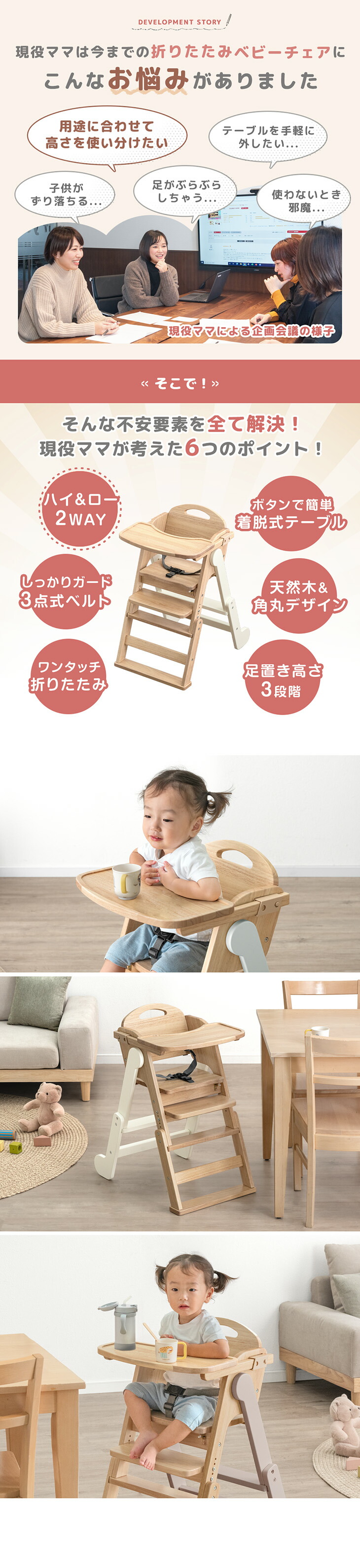 18日+5% ベビーチェア 折りたたみ 木製 おしゃれ ハイチェア ローチェア キッズチェア 3点式ベルト チェア 高さ調整 ミニ 椅子 いす イス 子供