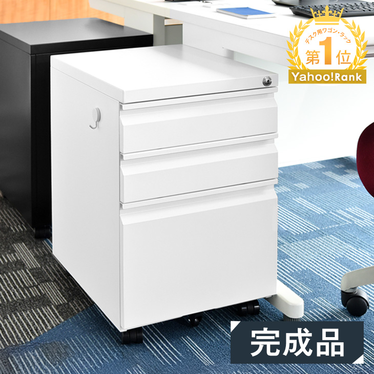 デスクワゴン スリム キャスター付き 3段 引き出し スチール 完成品 おしゃれ ワゴン サイドワゴン サイドチェスト 鍵付き キャスター オフィスワゴン シンプル