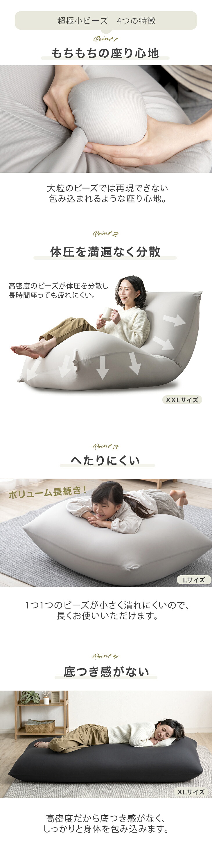 タンスのゲン ギガ盛 もちっとフィット ビーズクッション 背もたれ リラックス 大きい ビーズソファ ビーズソファー