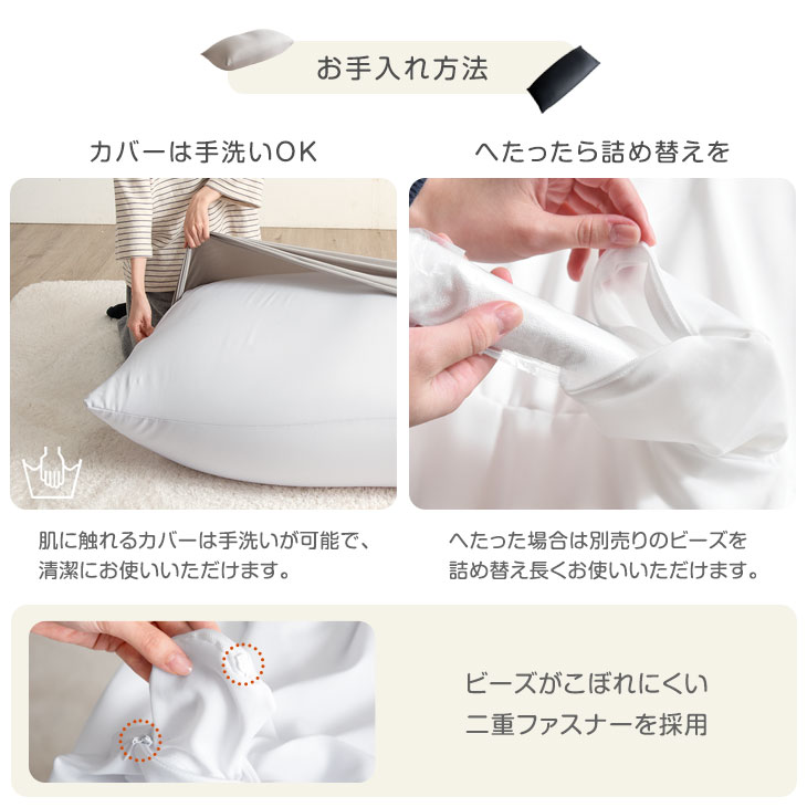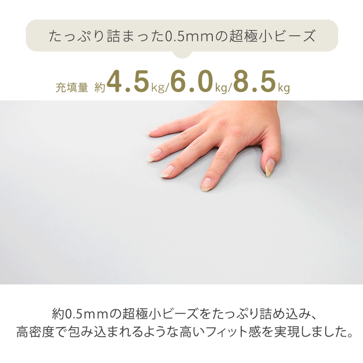 詰め物:発泡ポリスチレンビーズ(直径0.5mm)