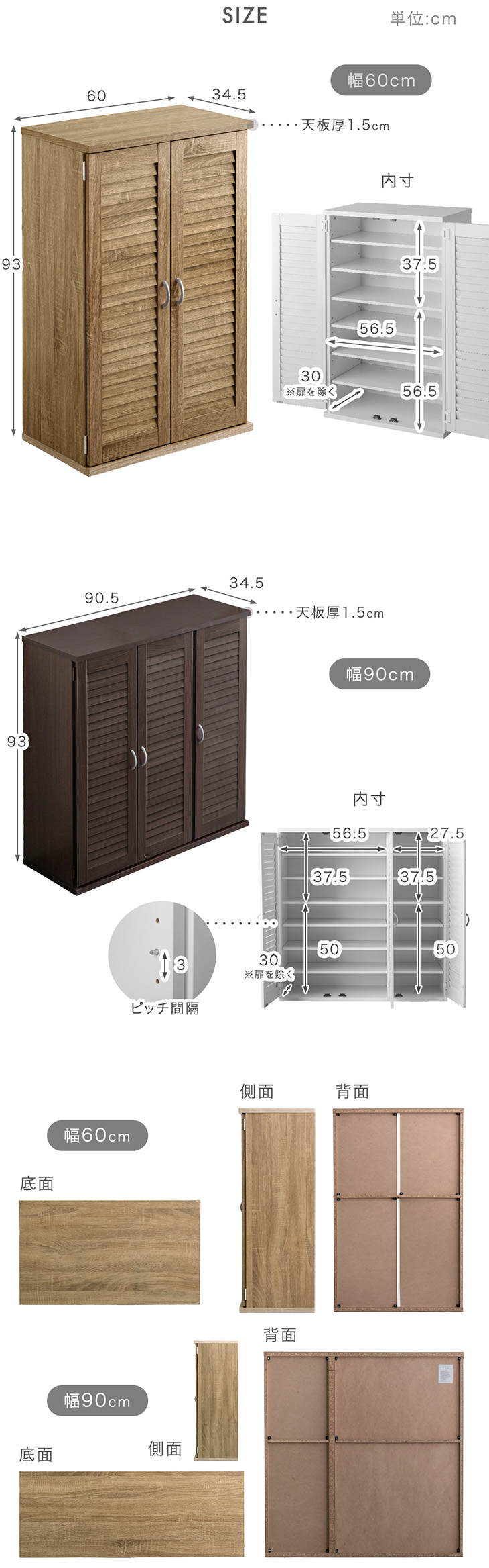 上:幅56.5x奥行30x高さ37.5cm