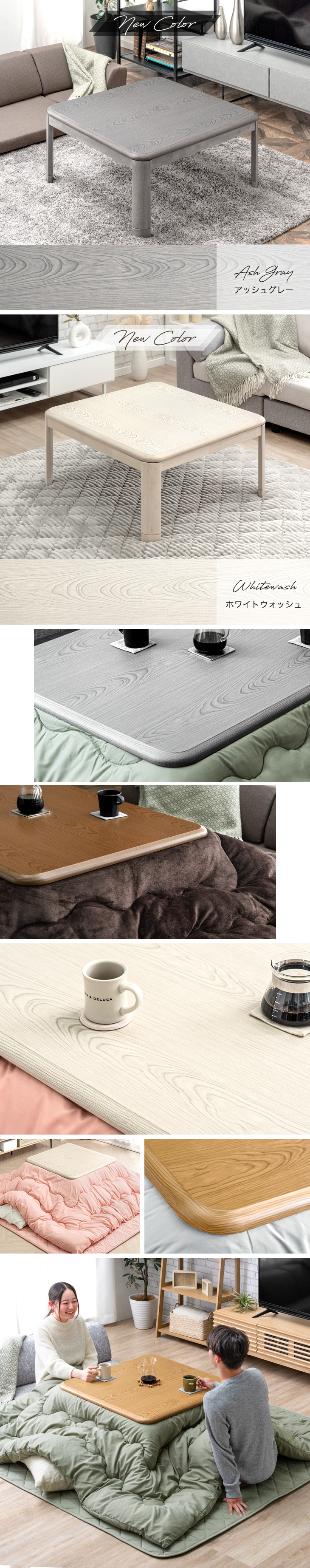 ブラウン、ナチュラル、ホワイトウォッシュ、アッシュグレー