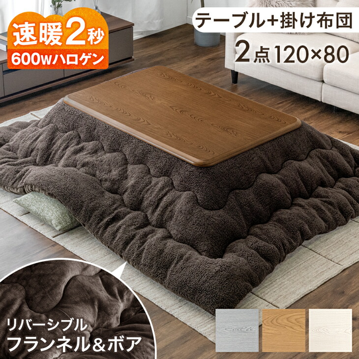 13日+5% こたつ 長方形 120 おしゃれ こたつセット こたつテーブル リバーシブル 幅120cm 2点セット こたつ布団 セット 速暖 ハロゲン 洗える こたつテーブル