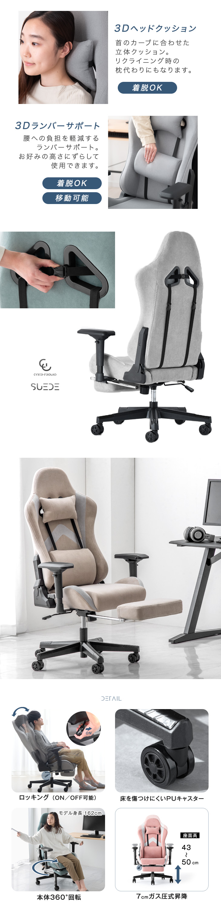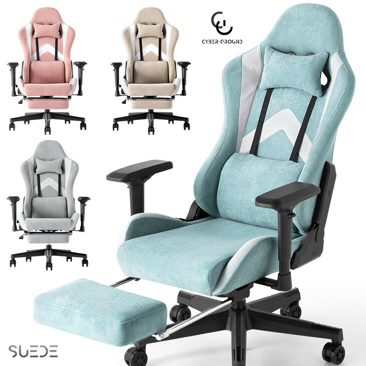 ゲーミングチェア リクライニング スエード調 オットマン おしゃれ オフィスチェア ハイバック ワークチェア デスクチェア フットレスト 事務椅子