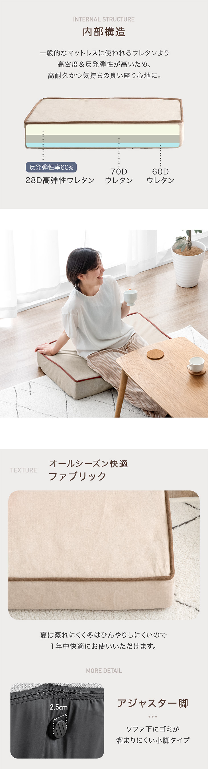 中材:ウレタンフォーム、ポリプロピレン綿