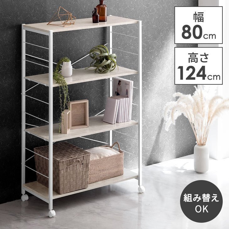 13日+5% シェルフ おしゃれ シェルフ棚 収納 幅80cm オープンシェルフ スチールラック 4段 棚 ラック 白 スチール スリム オープンラック 可動棚 キッチン