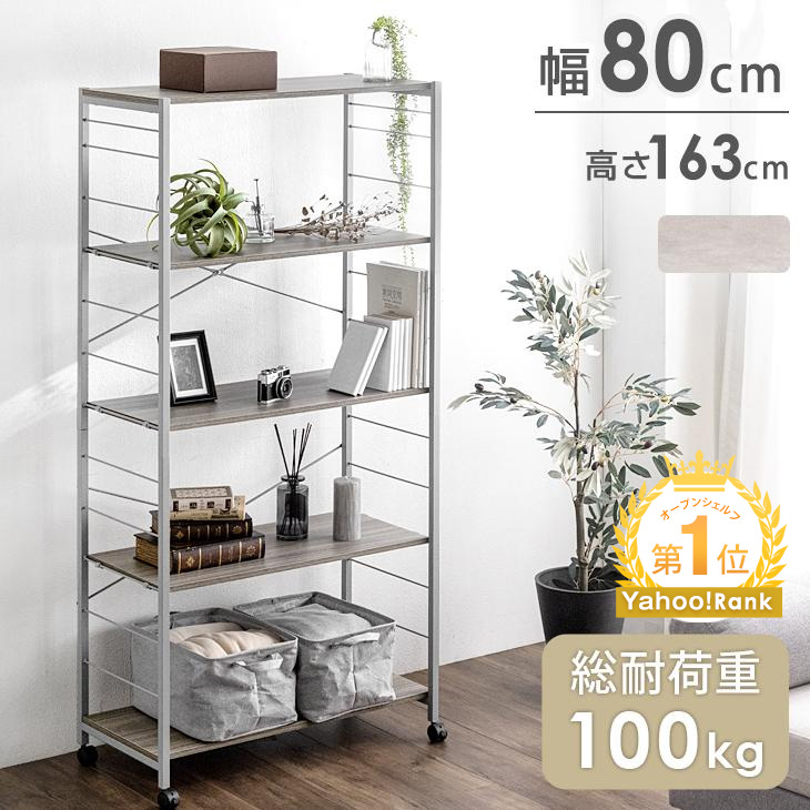 13日+5% シェルフ おしゃれ シェルフ棚 収納 幅80cm オープンシェルフ 5段 棚 スチールラック ラック 白 スリム 可動棚 キッチン